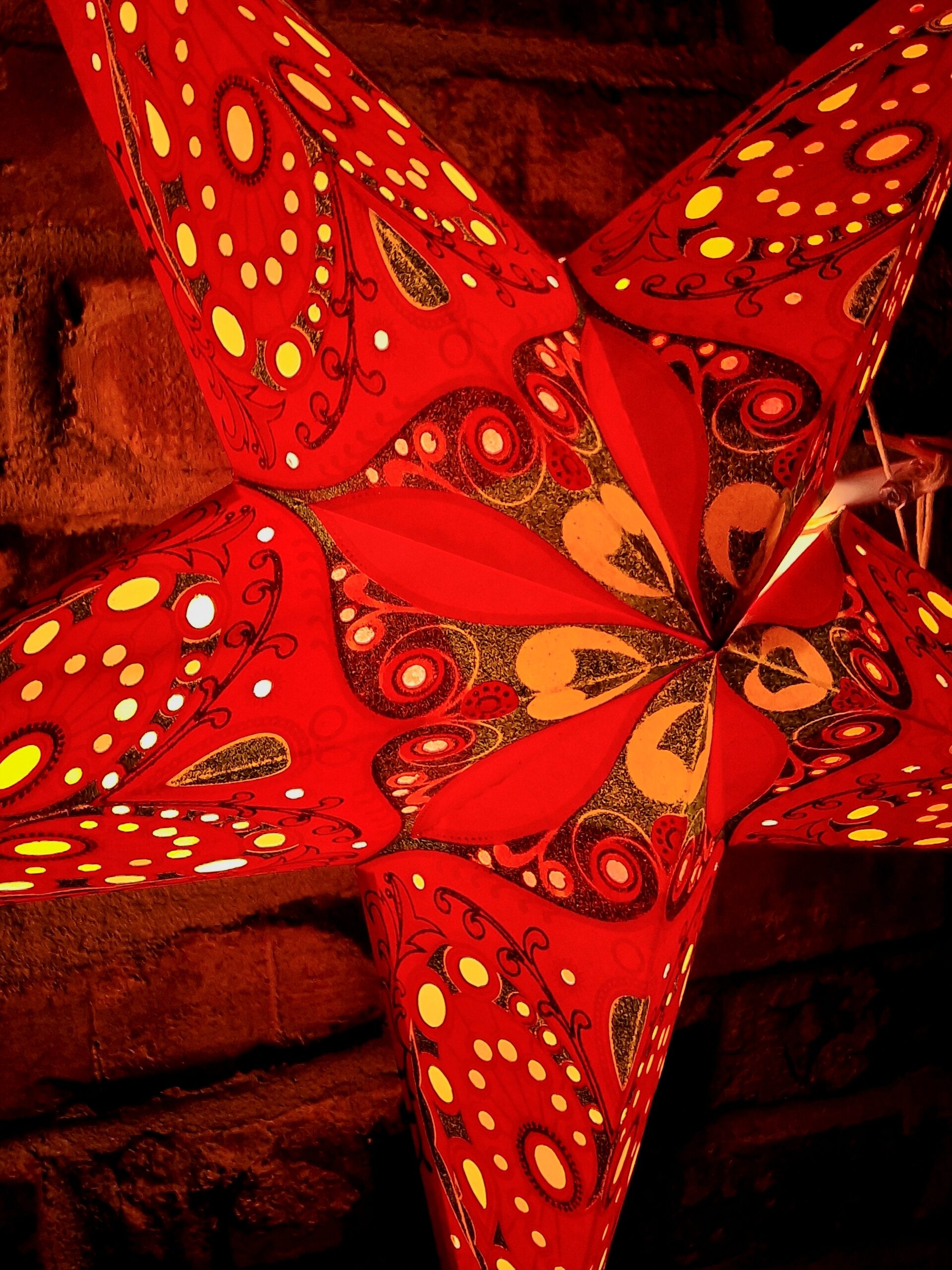 Varje adventsstjärna pryds med vackra mönster och glitter. När de hängs i fönstret, sprider de ett mjukt och varmt ljus, vilket skapar en mysig och inbjudande atmosfär i ditt hem. Ljuset som silas genom de vackra mönstren och de transparenta färgerna kastar ett magiskt sken på väggarna, perfekt för att skapa en stämningsfull miljö under julen.